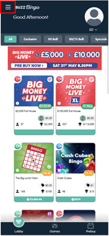 Step 2: Tap the ‘Play Bingo’ banner to open the Bingo Lobby