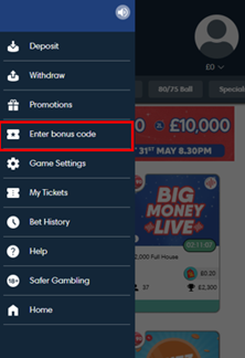 A Bingo Bonus Code gives you access to a special Buzz Bingo-only offer – think free tickets, bonus cash, or other bingo-tastic treats. But to claim it, you’ll need to enter the code in the Bingo Lobby – not the Bonus Code box!