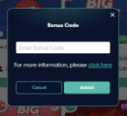- Free Spins code: Enter the code to get a set number of free spins on a slot game