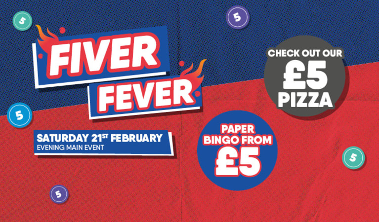 The legal stuff: All information is for this Buzz Bingo club only. Prices shown are for advertised sessions only and replace any other advertised prices. Main Event prize money advertised in club is estimated and therefore subject to change depending on ticket sales. In the event of multiple winners, the prize money will be split equally. Prices stated are for Main Event only unless stated otherwise. Optional games and touchscreen combo packages incur additional costs. £5 pizza refers to pepperoni or margherita only. Owing to our multifunctional kitchen cooking procedures, all fried items may contain traces of all allergens. While we take care to preserve the integrity of our vegetarian / vegan products, we advise that they are prepared in a multi kitchen environment. Fish and chicken may contain bones. Subject to availability Buzz Bingo general terms apply. Members only. We operate a “Think 25” policy, photographic ID will be required. Enjoy the game and play responsibly. Visit www.gambleaware.org or call GamCare free on 0808 802 0133.