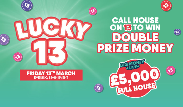 Have you heard? Our Evening Main Event on Friday 13th March is your chance to snag some FAB prizes! If you call on lucky number 13, you can win DOUBLE PRIZE MONEY!