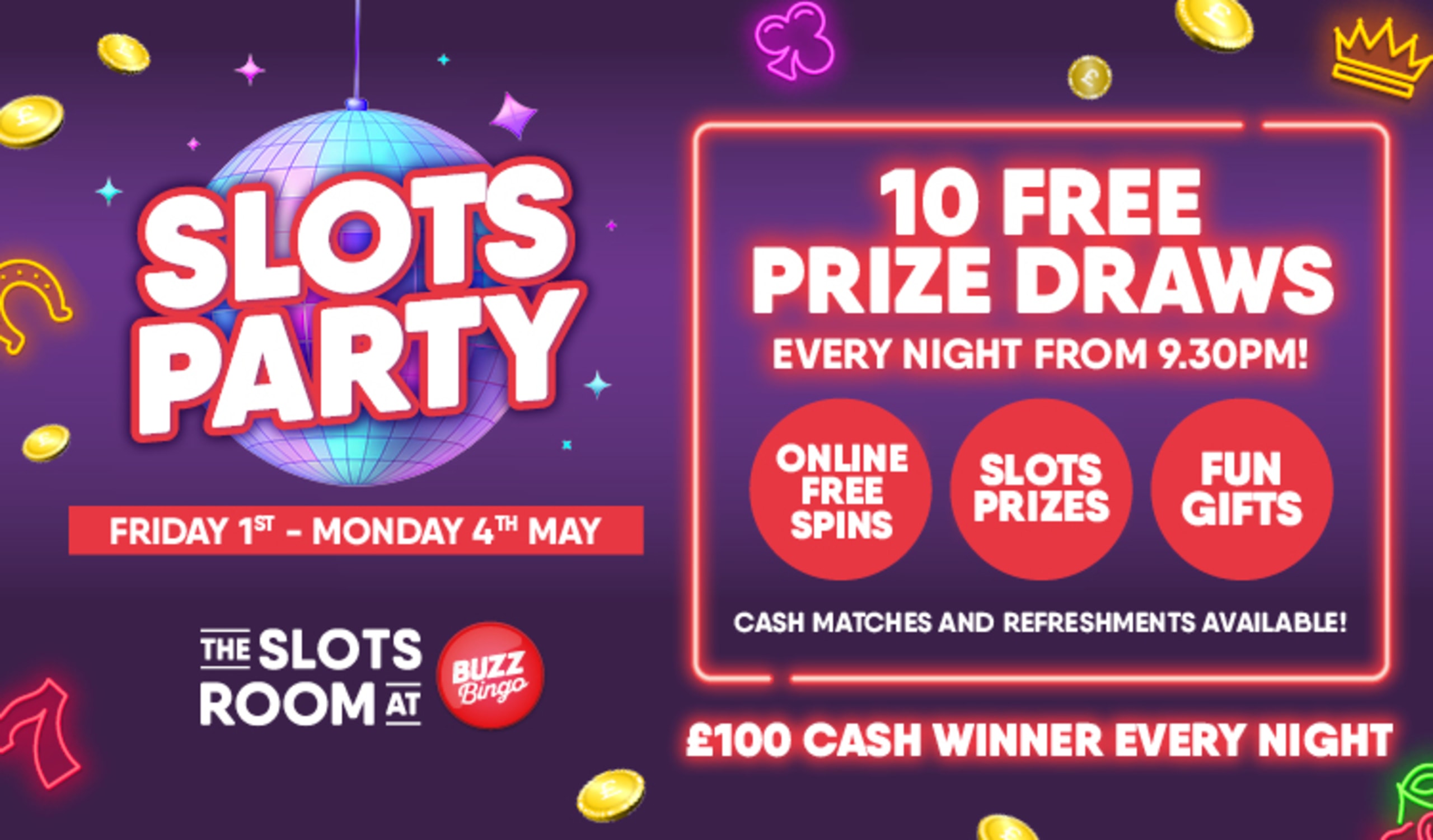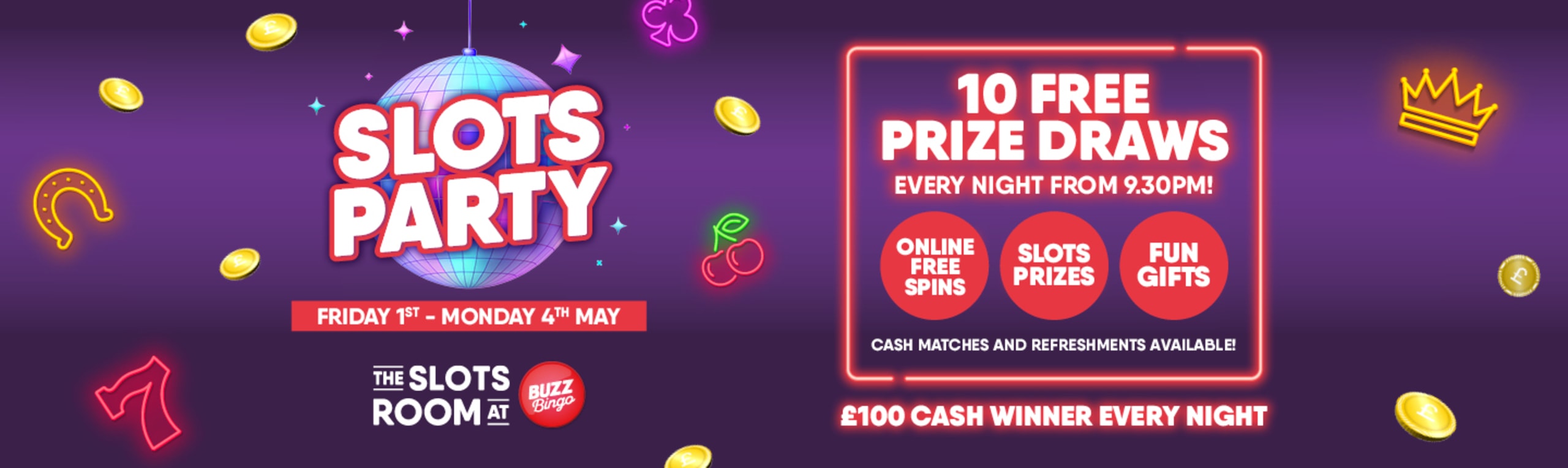 Come and join the Slots Party – great vibes, exciting prizes, and your chance to win £100 cash. Don’t miss out!